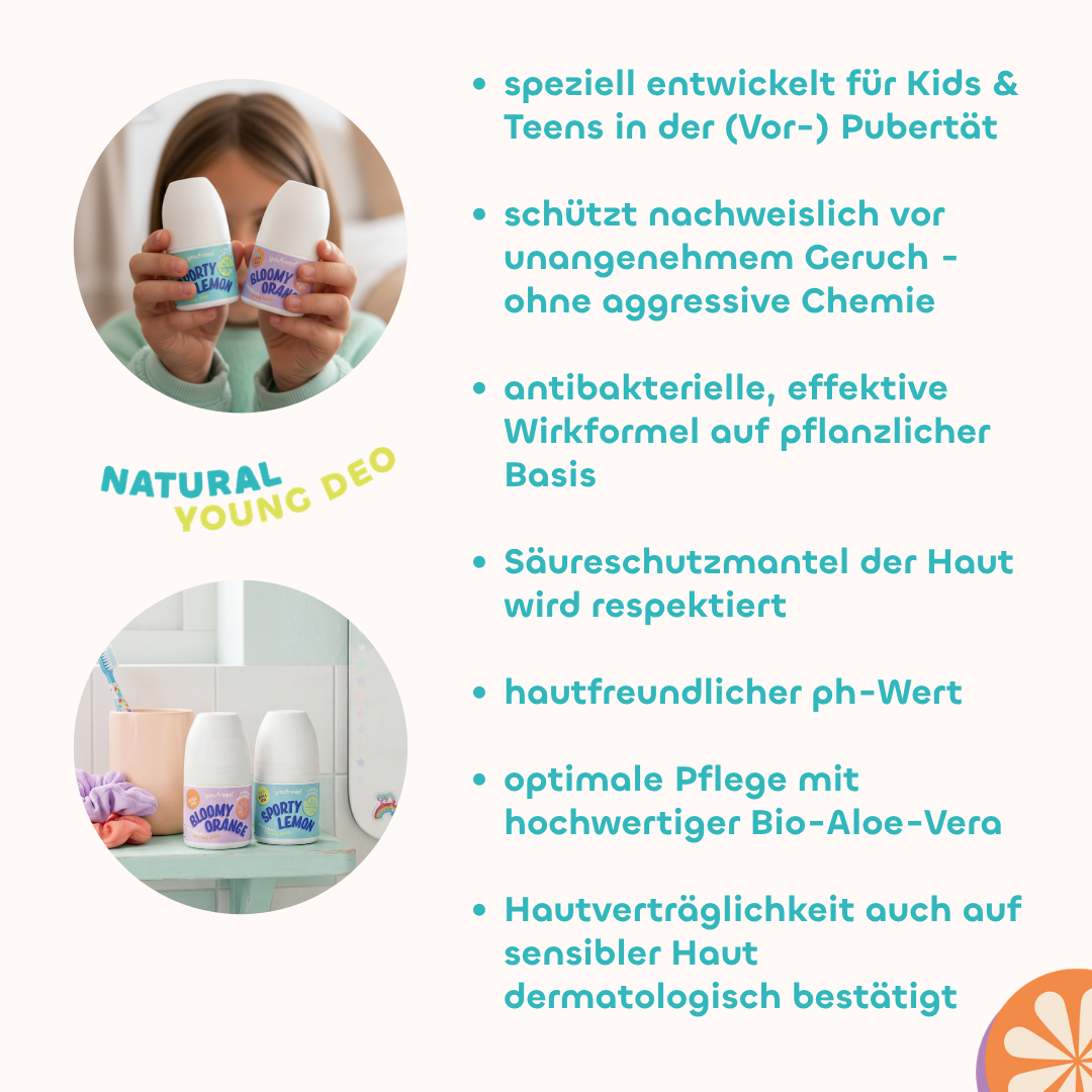 Schützt zuverlässig vor Schweißgeruch, ohne schädliche Chemikalien – perfekt für die ersten Schritte in der Pubertät.